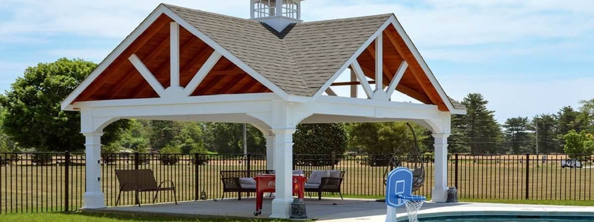 If its an Amish built shed such as a storage shed, pool house, garage, gazebo, pavilion, swing set, playhouse, chicken coop, animal shelter or indoor and outdoor furniture we are here for you. We offer our sheds, garages, pool houses in wood, vinyl, cedar and other materials.