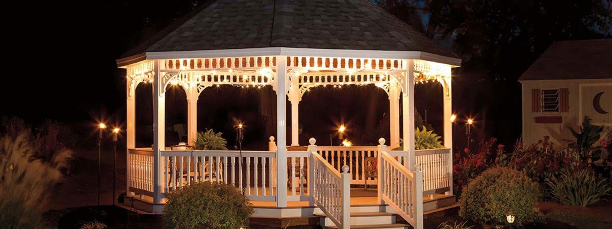 Our gazebos and pavilions come in wood, vinyl or cedar, while most swing sets are done in wood or vinyl. If its for your yard or home come see what we can build for you!