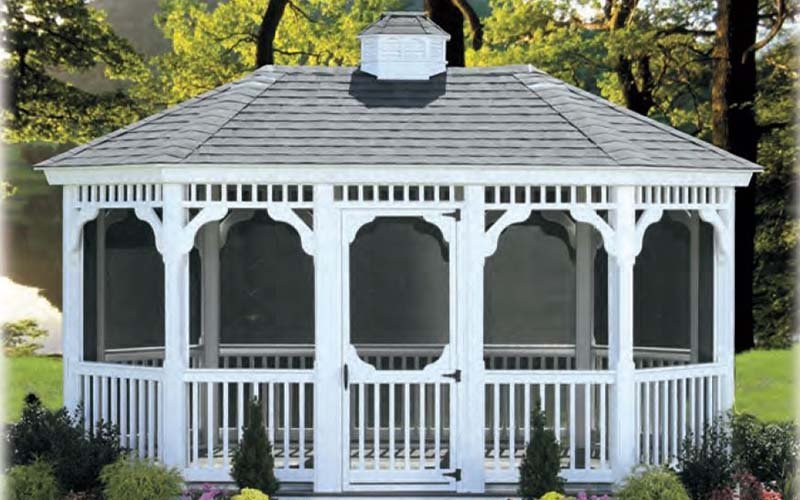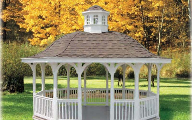 While the octagon gazebo is the most popular design we feature it in 12 different models and a wide range of sizes. The rectangle and oval gazebo are available in 4 different models and a wide range of sizes. The standard oval is available in 2 models and a few sizes. All our gazebos do include a cupola with the exception on the signature. Many other options are available.