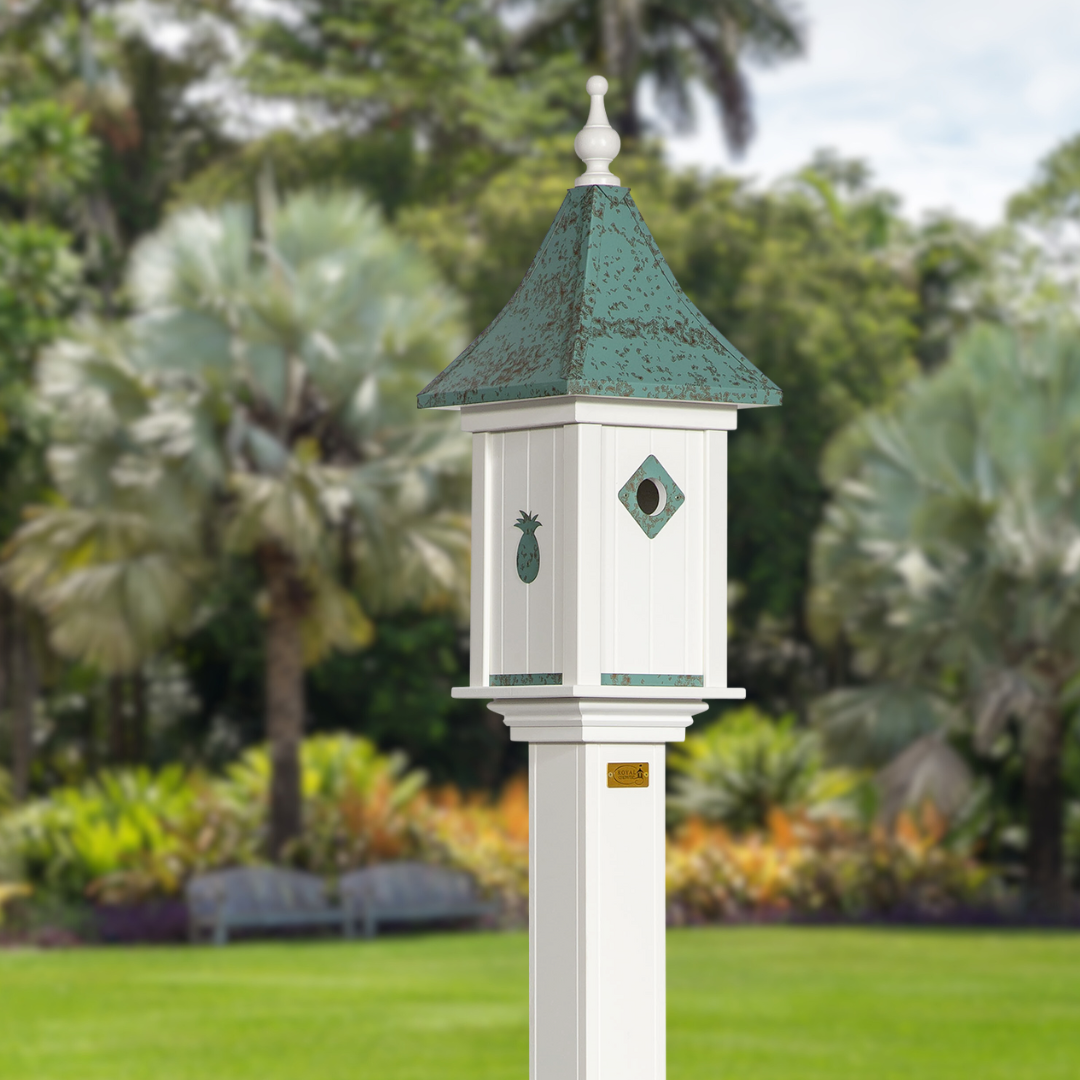 RC- Castle Bird House Patina Copper Pineapple Emblem $210