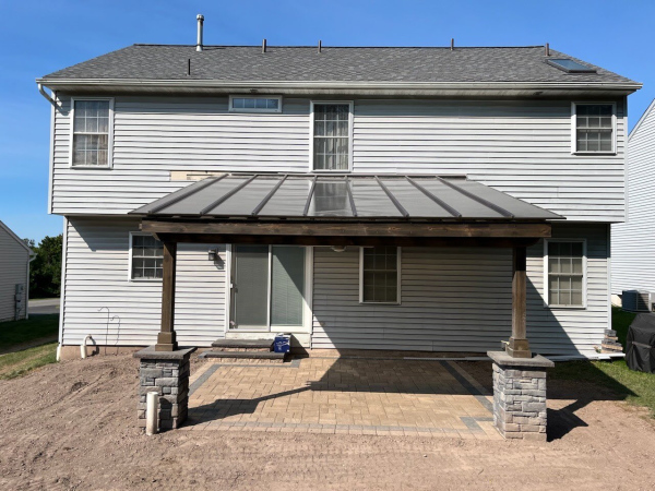 Custom Pavilions Not seeing a model that fits your needs? Reach out to us with any project ideas and we can work on finding a solution and ideal pavilion that meets what you are looking for Custom Pavilion attached to house w/ standing seam metal roof Custom Vinyl Pavilion attached to house