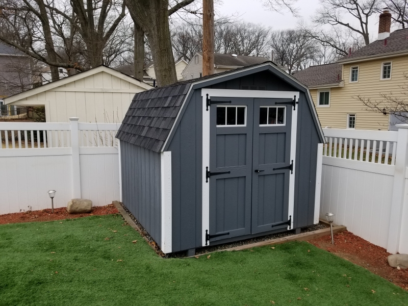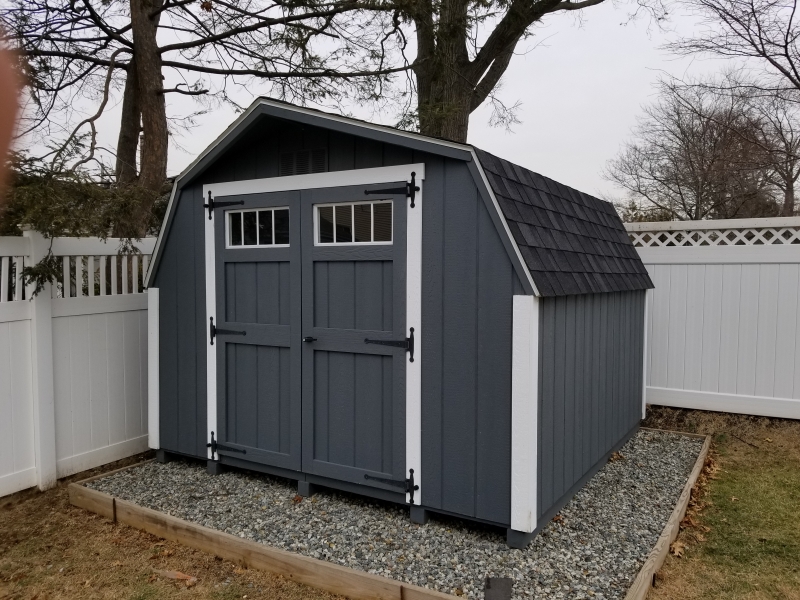 An economical option for basic storage, the 4’ Mini Barn has a Dutch (or Gambrel) roofline and 4’ sidewalls. Mini Barns come standard with a set of double doors and 1 window placed on opposite gable walls.