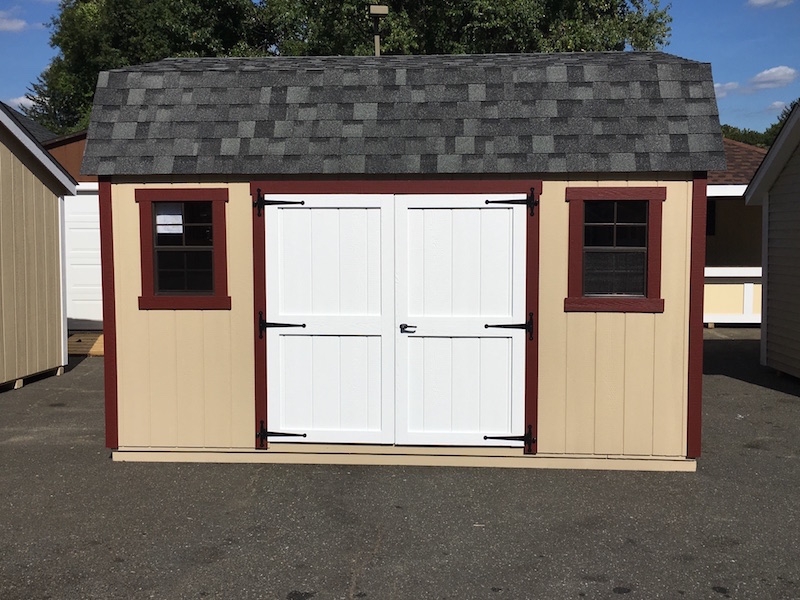 Our Deluxe shed series is a customer designed shed. It is a popular trim package that is a combination of a Traditional shed and New England shed series. It features a 1 x 4 miratec corner, your choice of 1 x 4 window trim or shutters, accented doors with a 10″ hinge. Its available in several different models.