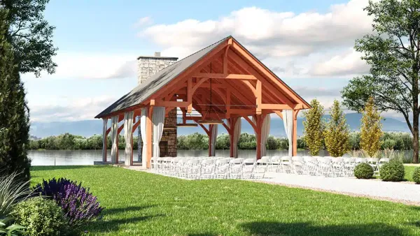 The Denali Timber Frame pavilion has a lot to love about it. With its distinctive hammer-beam split-truss design, this structure has awing beauty on another level. It also features extended ridge beams and lowered top chords in the trusses. With sizes ranging from 12×12 to 36×80, the Denali can be used in a variety of settings. From a small backyard structure to a large pavilion in a park, this structure can do it all!