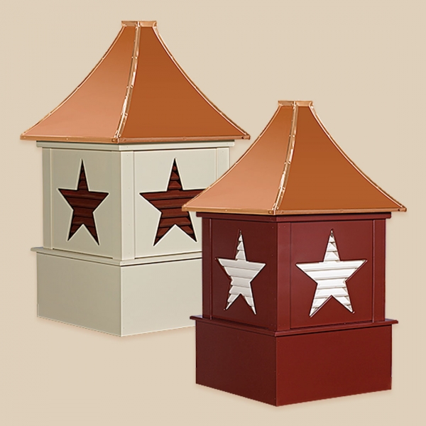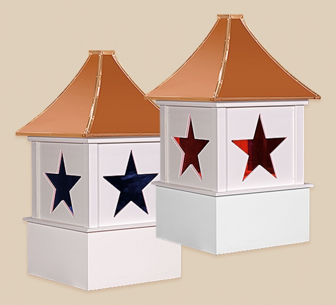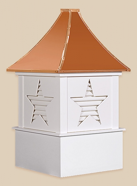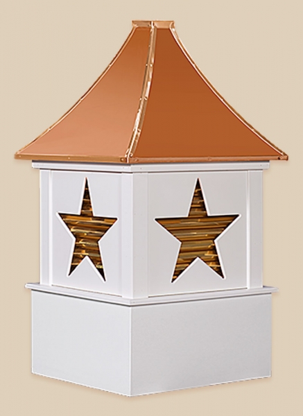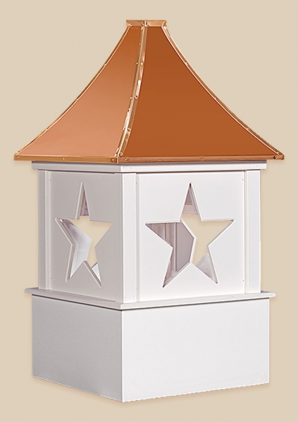 Designers Series Cupolas The Designer Series Cupolas are very unique in design and are sure to add class and charm to your roof line. These Cupolas are manufactured solely of a Vinyl-PVC trimboard and capped with a copper roof. The base sizes are 24″, 30″, 36″, 42″, 48″, 60″, and 72