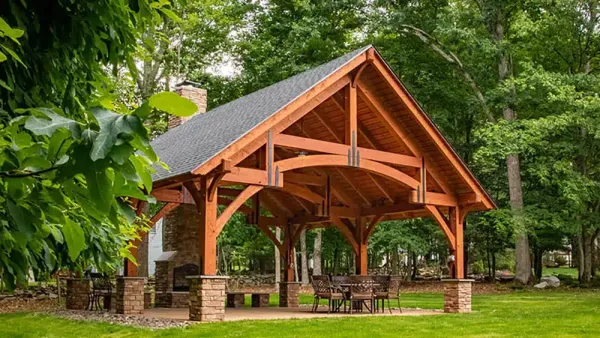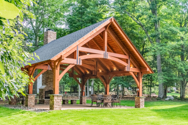 Are you looking for a timber frame design that is unique and multifaceted? The Grand Teton Pavilion might just be a perfect fit for you. With its graceful arched rib truss design and powder coasted strapping, you can enjoy a truly beautiful look! Plus, extended ridge beams and lowered top chords add additional style. Sizes for the Grand Teton range from 12×12 to 30×80, giving you plenty of flexibility in finding the perfect option for your space. The Grand Teton also pairs nicely with an outdoor fireplace or kitchen, so they might be features worth your consideration!