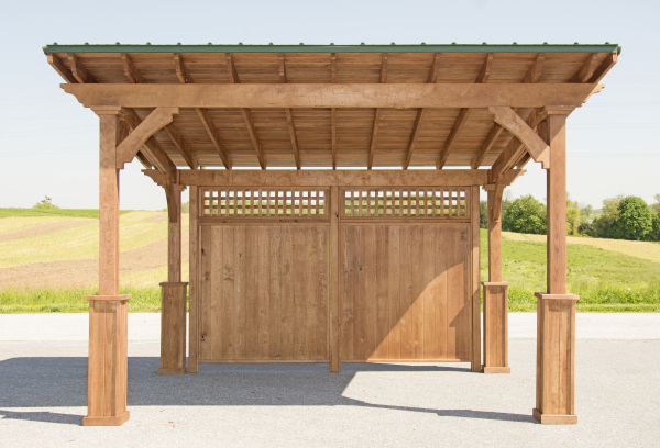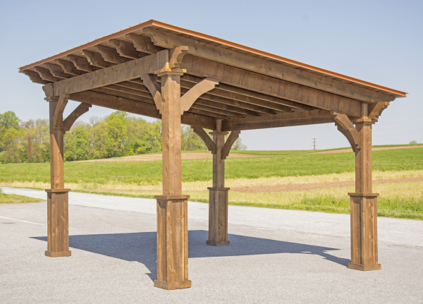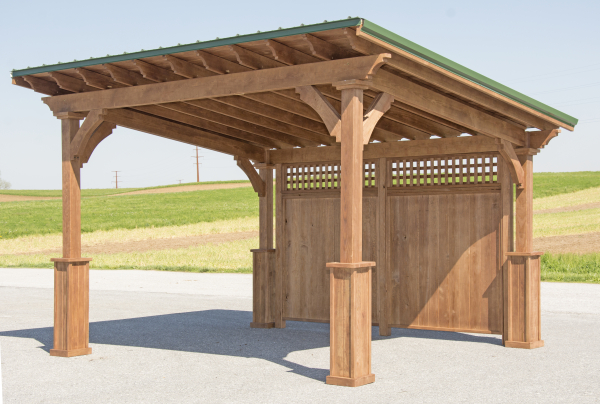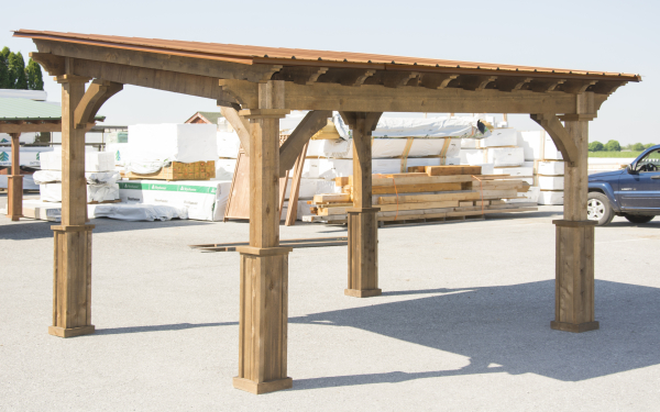 Standard Features: 5”x5” Posts 36” Post Base Double 2” x 8” Headers 2” x 6” Headers 1” x 6” T-G Metal Roof 2/12 Roof Pitch 16’ Wides have 2” x 8” Rafters
