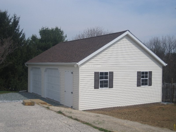 - Garage Doors: (2) 9’x7′ garage doors on 24′ wide and over, (2) 8’x7′ garage doors on 20′ wide (garage door locks available as an upcharge)