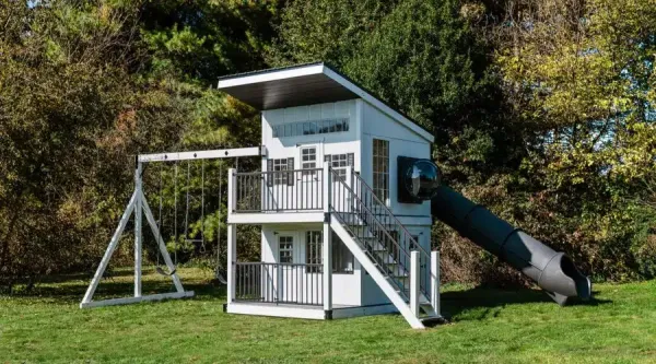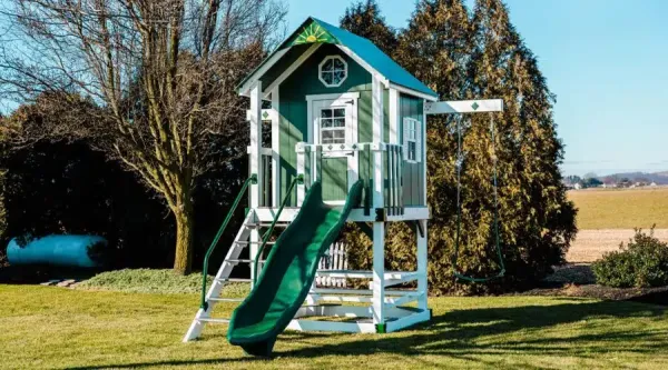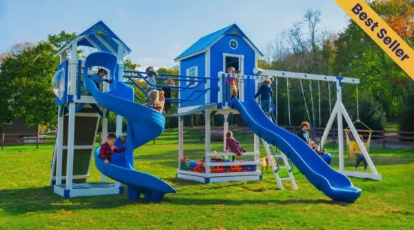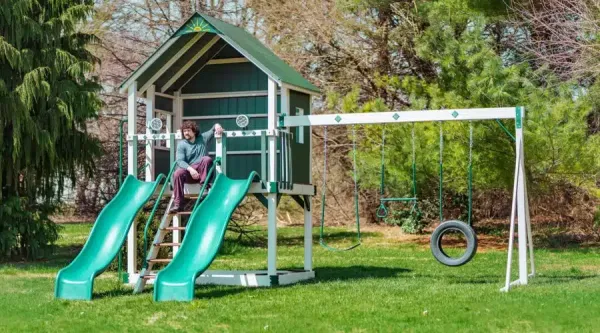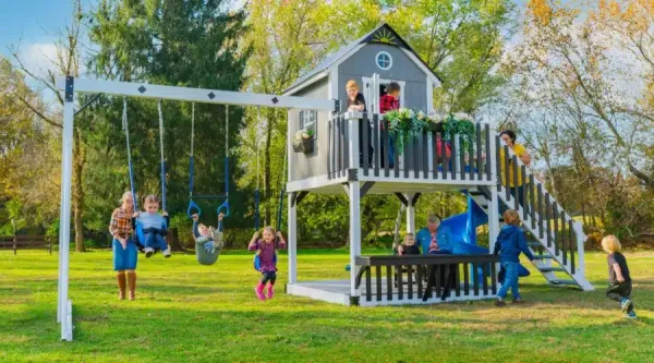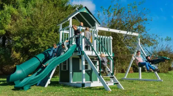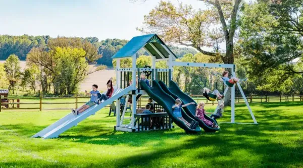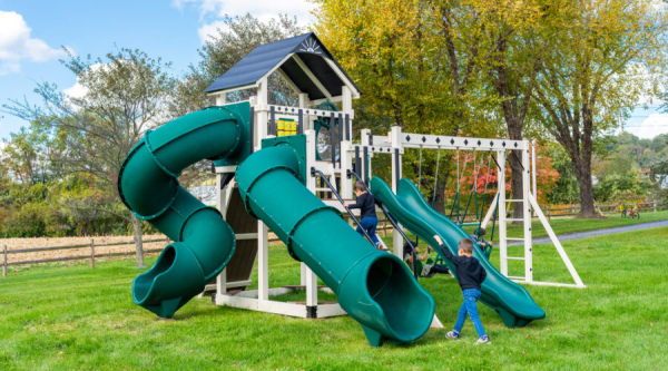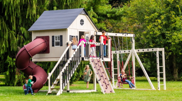 Made by some of the finest Amish craftsmen in the country, our swing sets will provide long hours of fun for your children and grandchildren. We make sure our swing sets are safe. Built to support adult weight, the deck surfaces can bear up to 250 pounds and most rides up to 200 pounds (except plastic gliders). So parents, you can play along with your kids!  Swing sets are unmatched for aiding in children’s physical, mental, social and emotional development. Exercising in fresh air stimulates muscle growth, increases coordination, and develops the mind.