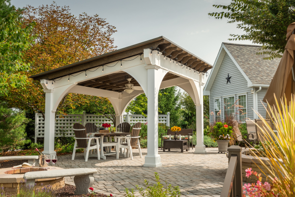 Our pavilions are used in gardens and backyards with many variations including wood or vinyl, with rounded columns and many more options. Amish Mike’s original designs offer function, storage and quality. You’re sure to find something here for your outdoor decor that will suit your tastes.