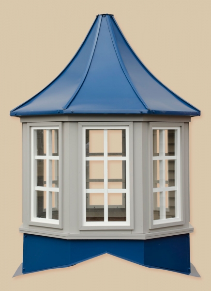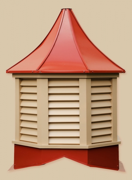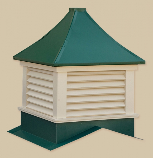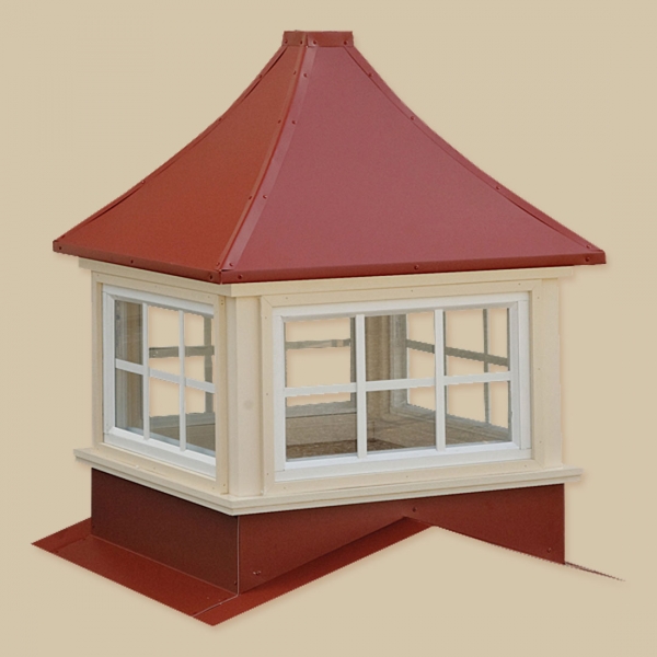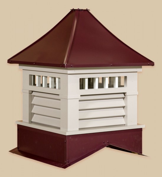 Sundance Series Cupolas Maintenance-free construction using vinyl and pre-painted steel materials. Pre-assembled in 3 sections for fast, labor saving installation. Square or Octagonal configuration, with windows or louvers in all sizes. Standard with weathervane mount. Cupolas accommodate up to a 6/12 roof pitch. Extended bases available. The base sizes are 24″, 30″, 36″, 42″, 48″, 60″, and 72