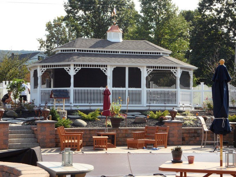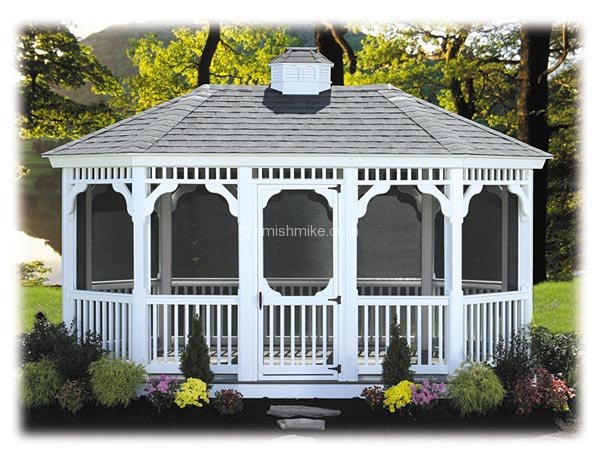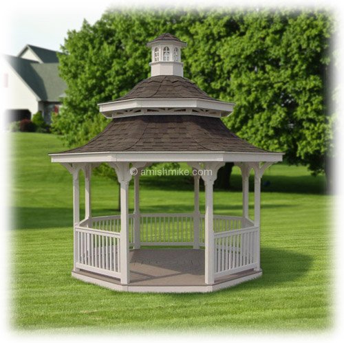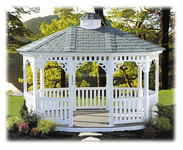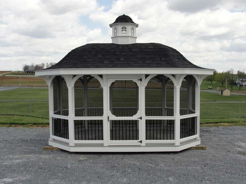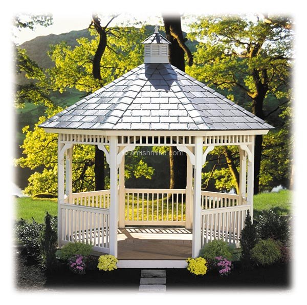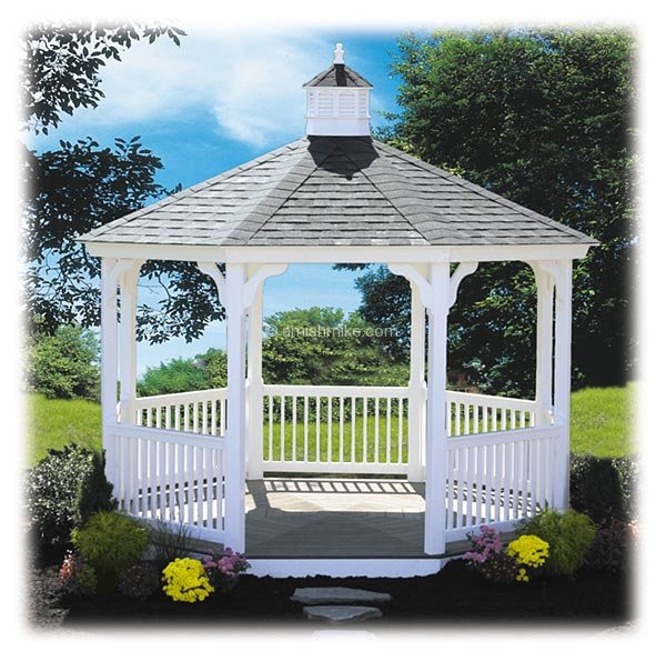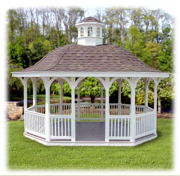 While the octagon gazebo is the most popular design we feature it in 12 different models and a wide range of sizes. The rectangle and oval gazebo are available in 4 different models and a wide range of sizes. The standard oval is available in 2 models and a few sizes. All our vinyl gazebos do include a cupola with the exception on the signature model. Many other options are available.