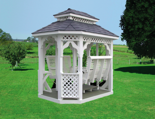 Vinyl gazebos have many different uses: a getaway, in the garden, to remember someone, an office, pool cabana, storage or more! We’ve seen them used at a home, park, school, business or townships.