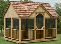Amish Mike’s original designs offer function, storage and quality. A solution for all your Gazebo Swing needs!