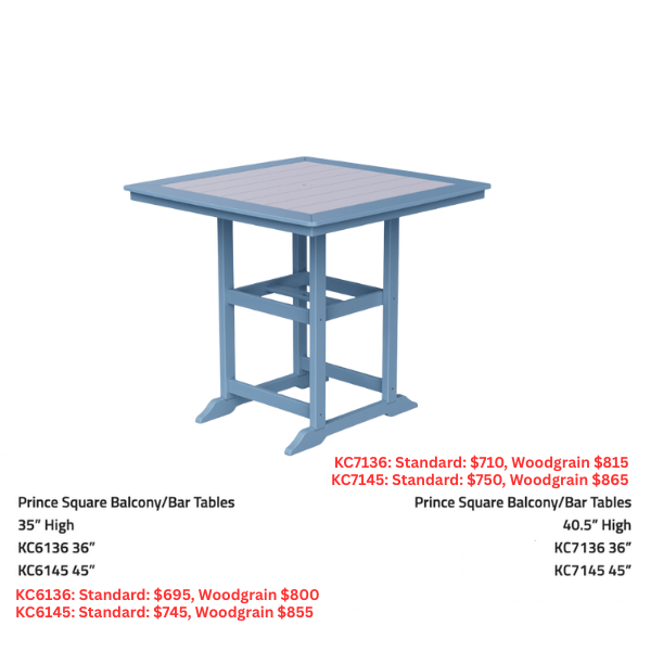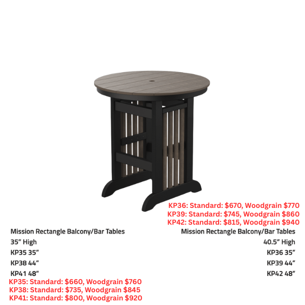 Pub Height +$75 [to table price only]