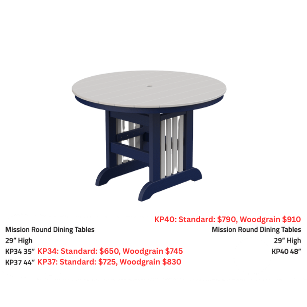 (Round table also available in 48″ and 44×82)
