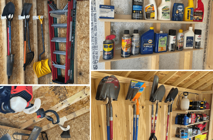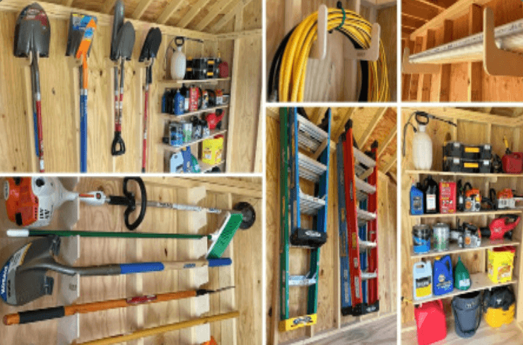 The Max Shed Kit [(4) Garden Tool Double Organizers, (4) Shelf Brackets 10-12" Shelves, (4) Misc. Organizer Hooks]